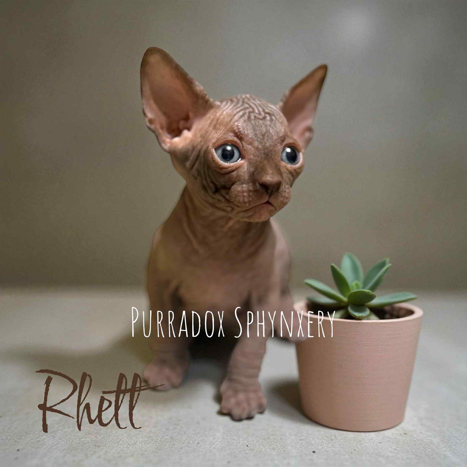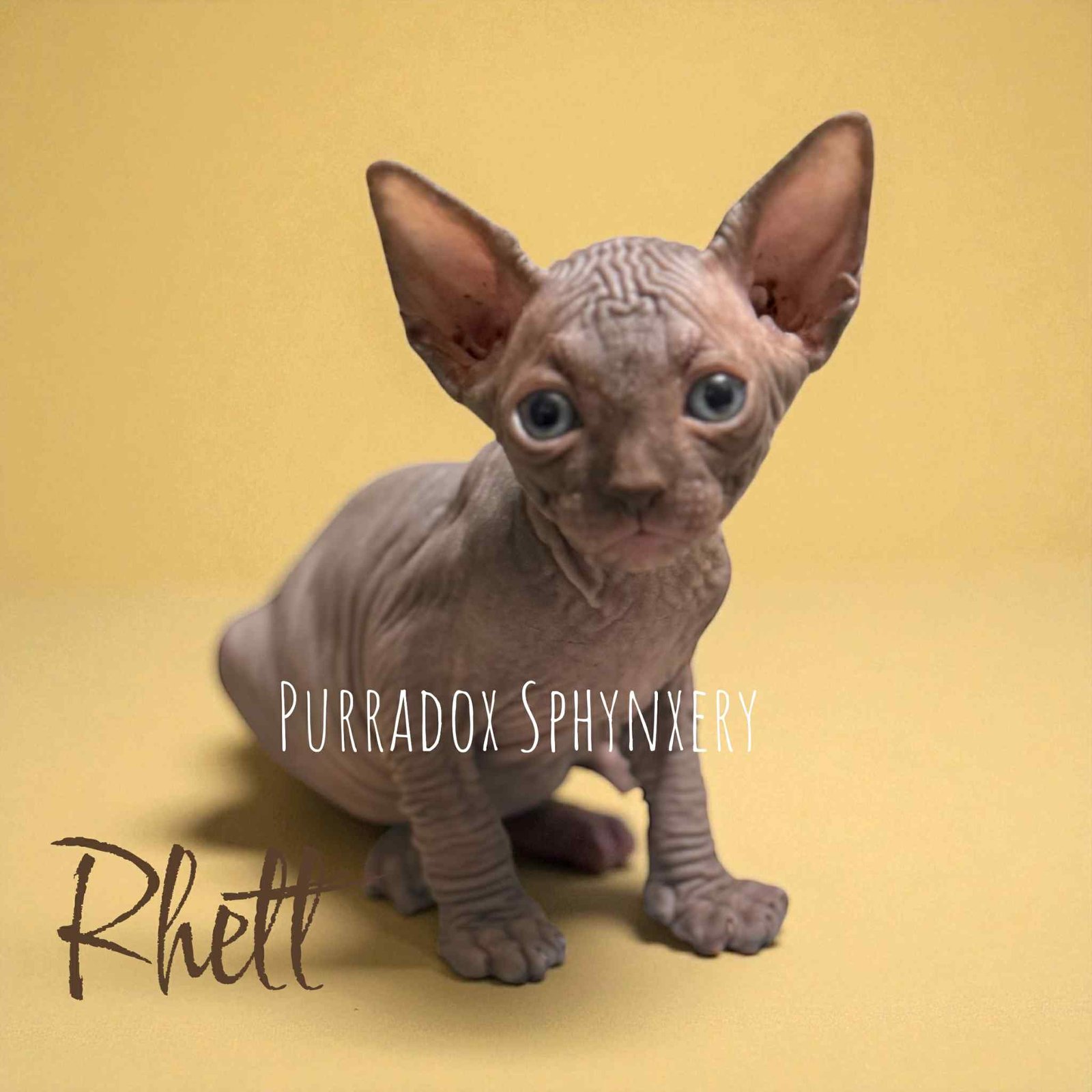 At Purradox Sphynxery, every kitten is raised with expert-level care and health standards. Rhett will go home: